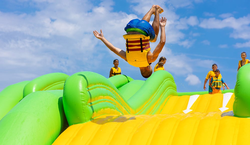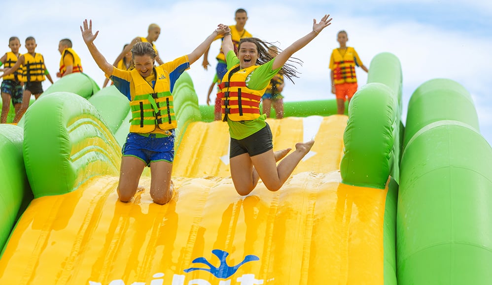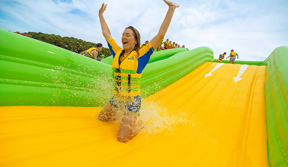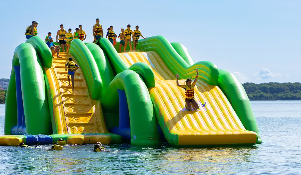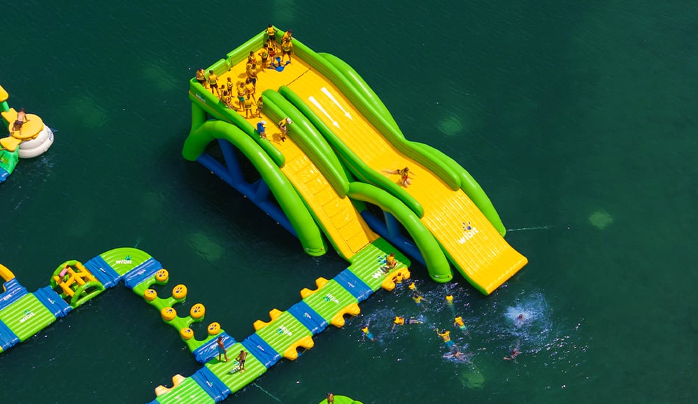 From racing a friend down the double lanes to just taking in the incredible views of the park from the 16-foot lookout platform, the Wave is designed for maximum thrills. It’s the perfect centerpiece for our chemical-free, naturally filtered lake, combining the high-energy fun Wibit is known for with the sustainable, nature-first vibes of our park.