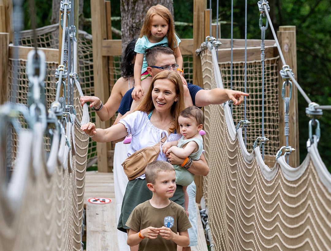Traverse a quarter mile, 10-25 feet above the ground, on the world’s longest suspended treewalk.