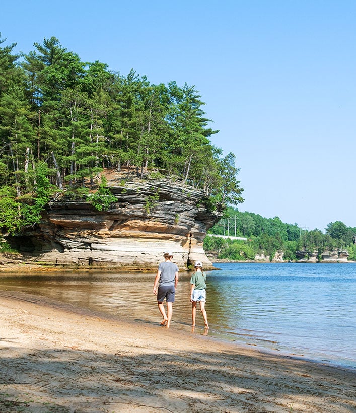 Hike up a short hill to Sugar Bowl Lookout for an amazing view of the Wisconsin River and beach.