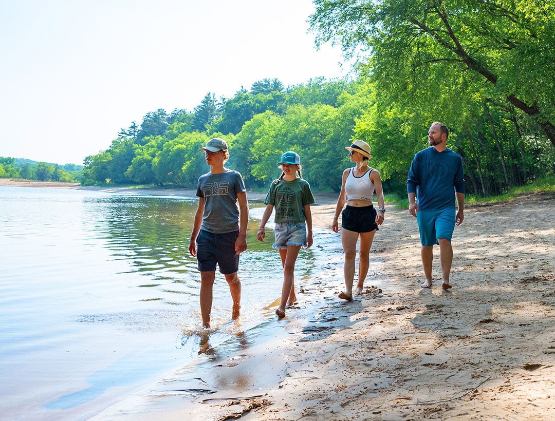 Explore more than 2,000 feet of private beachfront on the Wisconsin River. Note: No lifeguards are on duty.